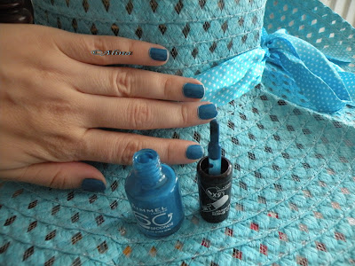 Adica eu 😀 sau noua mea oja Rimmel, 840 Blue Eyed Girl, de care sunt indragostita! Imi place foarte mult aplicatorul lat, care face posibila o uniformizare a ojei pe suprafata unghiei, uscarea rapida si culoarea intensa! Dupa 2 zile de utilizare intensa, inca rezista. Fara a-i aplica top coat 🙂