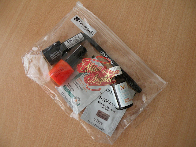 Sa nu zic totusi ca am plecat cu mana goala de acolo, am trecut pe la Farmasi, o firma care are produse disponibile peste tot. Cu toate astea, dintre produsele lor am folosit un gel de dus, acum cativa ani si cam atat. La targ am gasit preturi interesante, nu stiu daca si in oras sunt la fel de ieftine produsele. Mi-am luat un creion de ochi, un gri pe care-l caut de ceva vreme peste tot, la doar 7 ron si impreuna cu prietena mea am beneficiat de promotia la oje, 3+1 gratis, de care nici nu stiam. O oja costa 5 lei si eu mi-am ales una neagra (care s-a dovedit a fi un albastru foarte inchis). Pentru ca am facut cumparaturi de peste 20 ron, am primit si un portfard cu urmatoarele produse: un creion de ochi, un ruj, o oja si cateva mostre. Produsele le-am impartit frateste si, efectiv, am ajuns acasa cu urmatoarele: