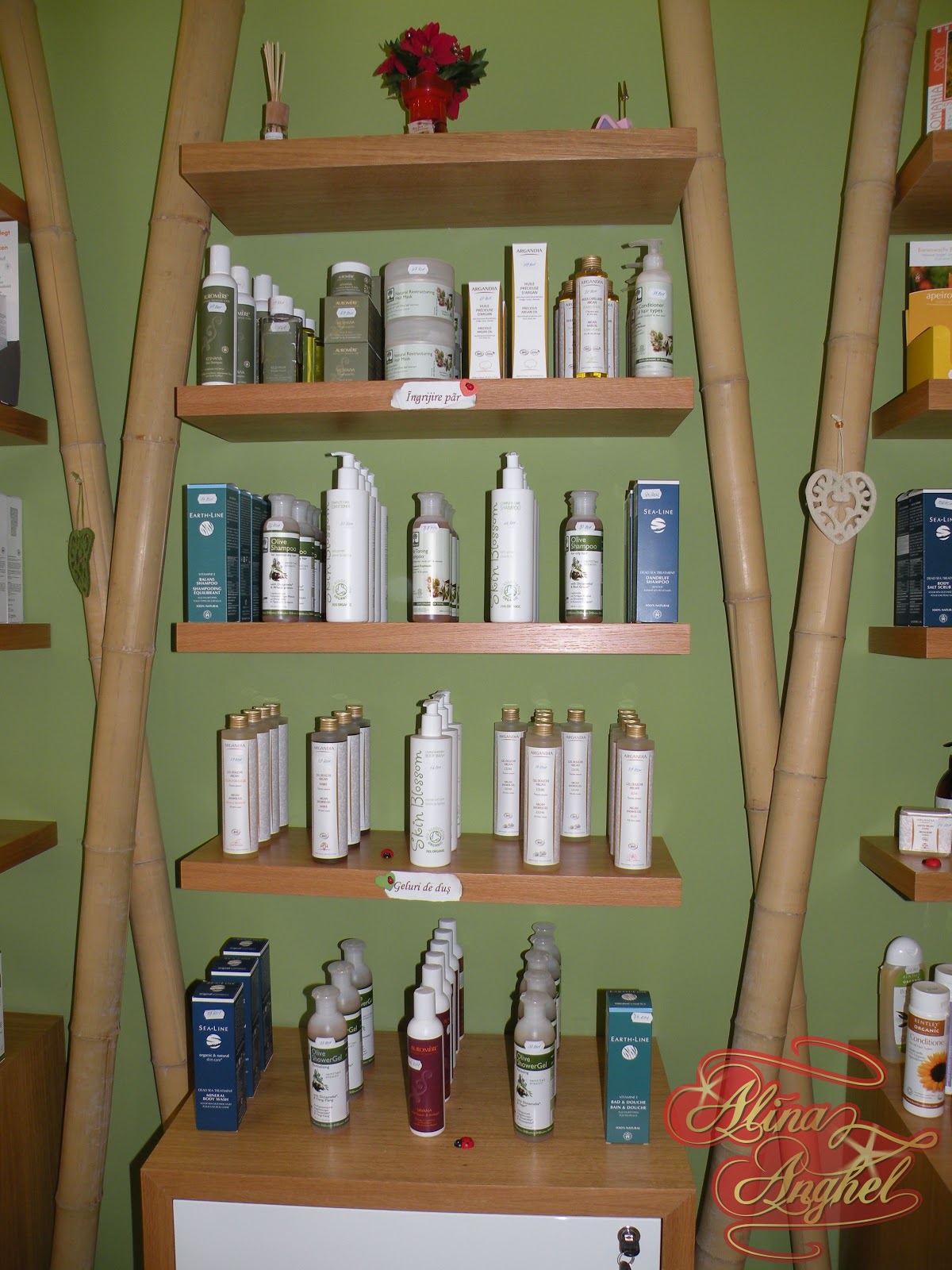 Bio Boutique comercializeaza o gama variata de produse cosmetice bio – produse cosmetice organice certificate ECOCERT, BDIH, ICEA marca Bio Select, Apeiron, Auromere, Madara, Original Cosmetics, frumos amenajate pe rafturile cu decoratii de bambus: