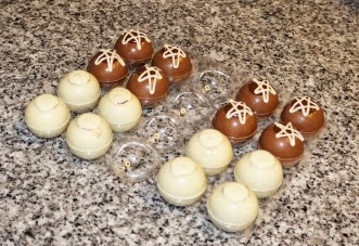 Cand credeam ca am terminat, la orizont apare o noua provocare: umplerea si decorarea pralinelor! De comun acord, am ales cirese (dupa ce am depus munca de convingere cu Ilda) pentru cele din ciocolata alba si alune de padure pentru cele cu lapte.