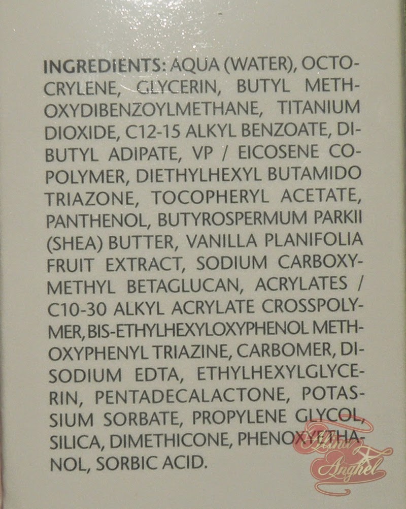 Ingredientele sunt mai jos. Le-am identificat pe cele care se ocupa de protectia solara (octocrylene, butyl methoxydibenzolymethane, titanium dioxide), desi nu se mentioneaza si cantitatea acestora:
