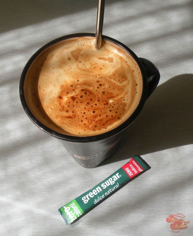 Un pliculet de green sugar este echivalent cu o lingurita de zahar. Mie nu imi place cafeaua foarte dulce, asa ca o lingurita de zahar este suficienta la o cana. Da, a trecut testul! Nu am simtit nicio schimbare la gustul cafelei mele de zi cu zi.