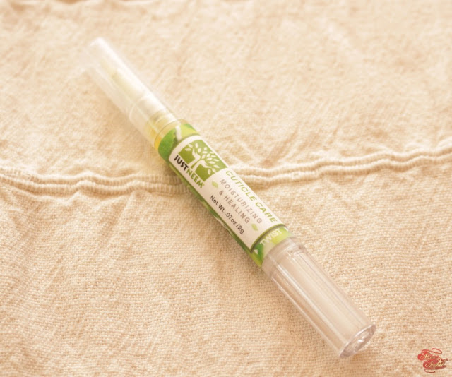 Un ultim produs adaugat in cos a fost un „stilou” cu o combinatie de uleiuri pentru cuticule. M-a atras forma recipientului, gandindu-ma ca aplicarea se poate face curat si frumos (in ultima vreme am tot folosit ulei de cuticule in recipient clasic si m-am manjt peste tot), dar la mana dreapta aplicarea este mai greoaie. Trebuie sa recunosc totusi ca ideea celor de la JustNeem este buna. L-am amplasat langa laptop si mai aplic din cand in cand un strat de ulei, poate reusesc sa resuscitez si cuticulele.