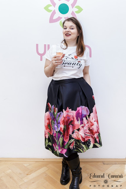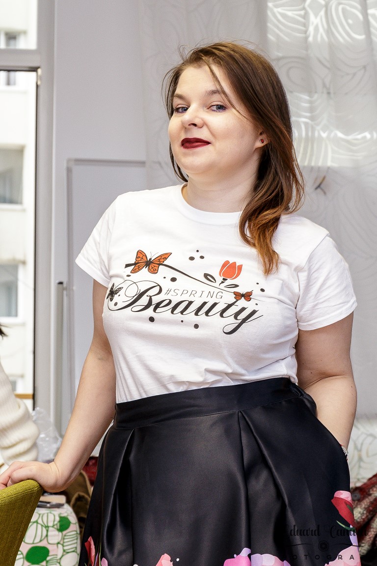 Mi-am dorit sa port o tinuta ce se asorta cu evenimentul si nu a trebuit sa caut mult. Logo-ul evenimentului este conceput de Eduard Canura Fotograf, iar Ruvix s-a ocupat de printarea tricoului si de fusta asortata. Botinele sunt de la pantofigiulio.ro.