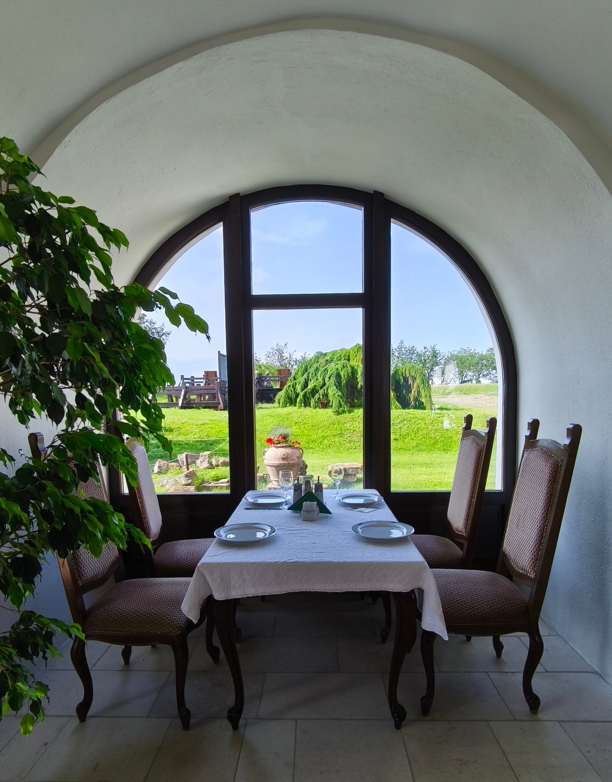Am optat pentru o cină ușoară (piept de pui cu sos de ciuperci și hribi și porc gratinat cu legume la grătar) și pot spune că gustul a fost peste așteptări. Porțiile sunt corecte, ingredientele proaspete, iar servirea impecabilă. A fost cel mai bun pui pe care l-am mâncat în viața mea, aroma ciupercilor a completat perfect carnea. Prețurile pentru cină sunt rezonabile și perfect justificate de calitatea experienței (în jur de 300 lei, cu desert și băuturi: apă, vin, limonadă) – un avantaj important pentru cei care vor să se bucure de o masă de calitate într-un cadru deosebit, fără a ieși din buget.